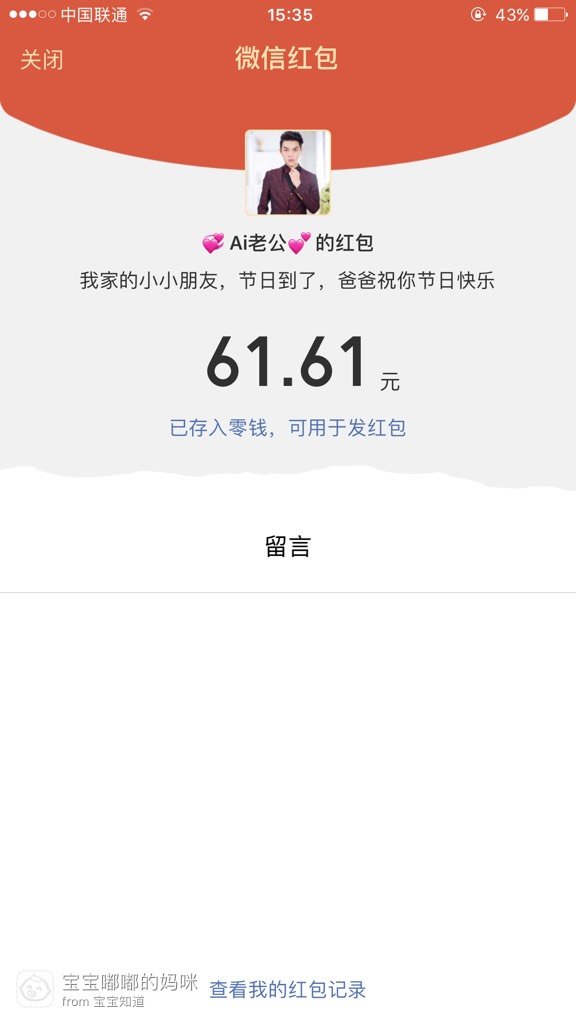 然而我的胎宝宝还有一个月左右就要出生了,这是他(她)在妈妈肚子里过的第一个儿童节。虽然爸爸妈妈和你还没有见面,但是我们都深深的爱着你哦!你看这是爸爸在你还是胎儿的时候就给你准备了小礼物🎁哦!(小红包)爸爸也越来越像爸爸咯