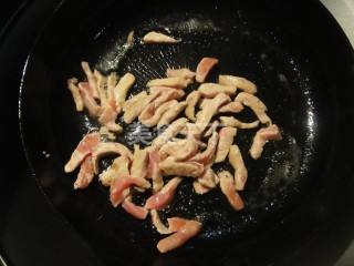 5 锅中热油,下猪肉翻炒。