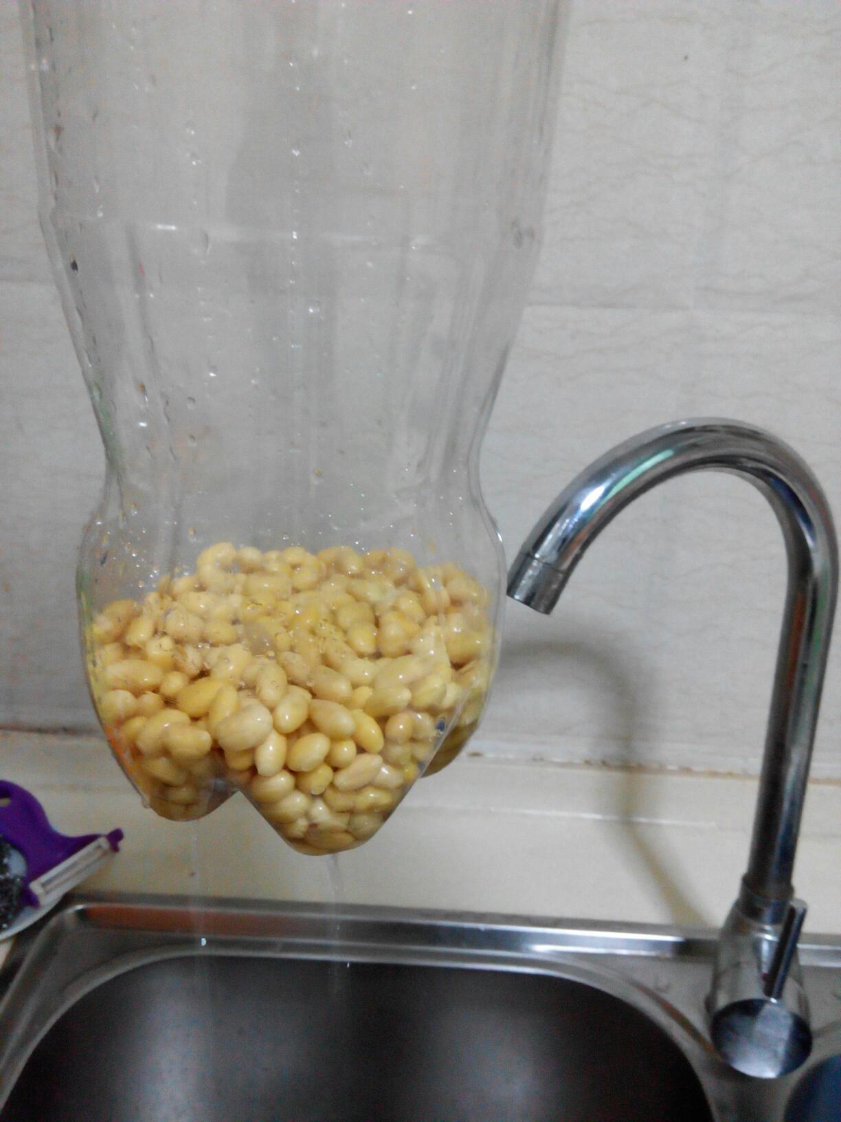 把泡好的黄豆装进瓶子