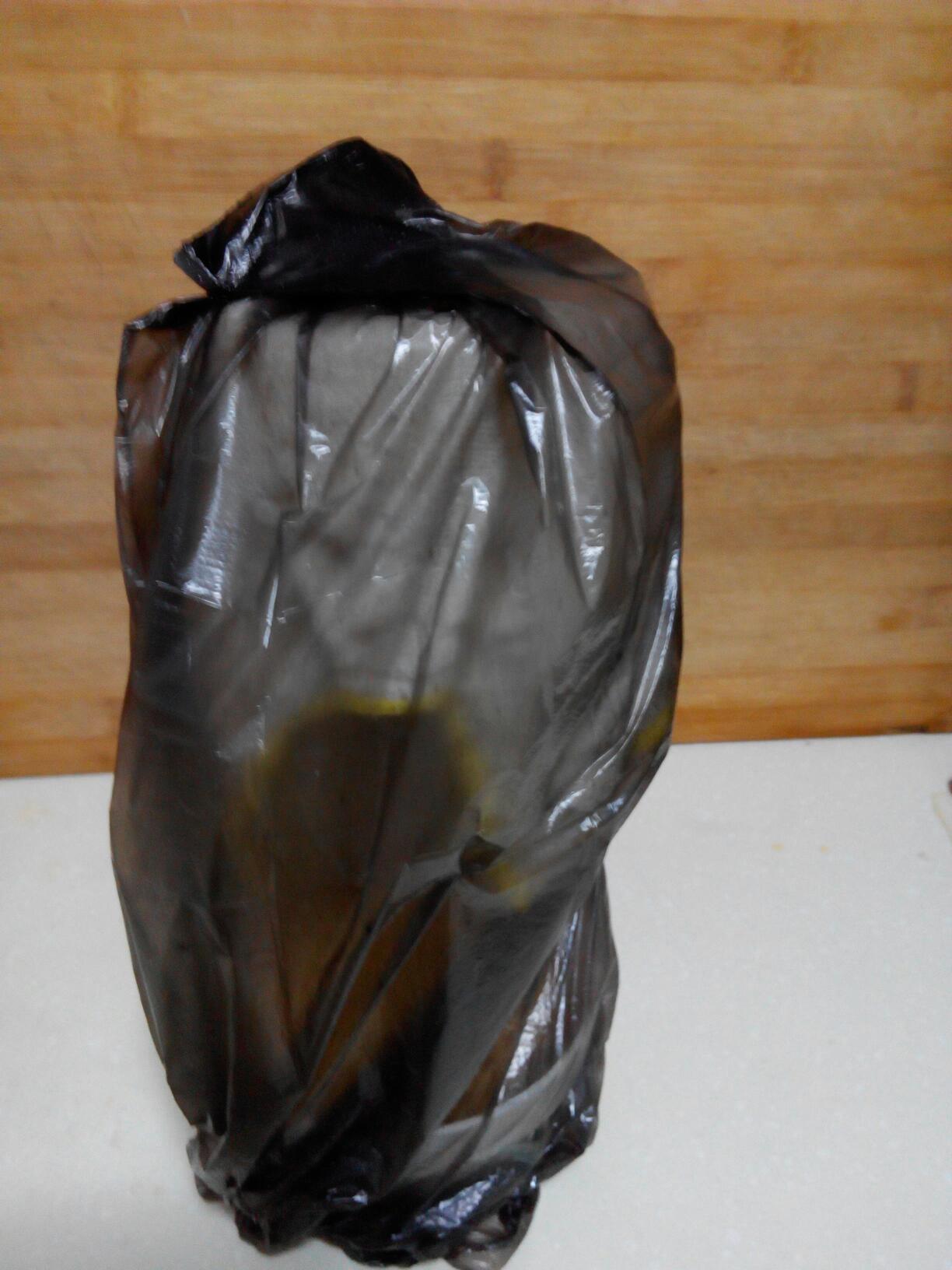 最后给瓶子上蒙上黑色塑料袋