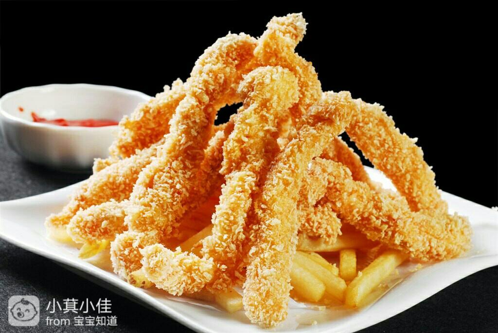 大家都知道图片上的这是炸鸡柳。基本上每个小朋友都特别喜欢吃的,口味也是比较的适合小孩子们。