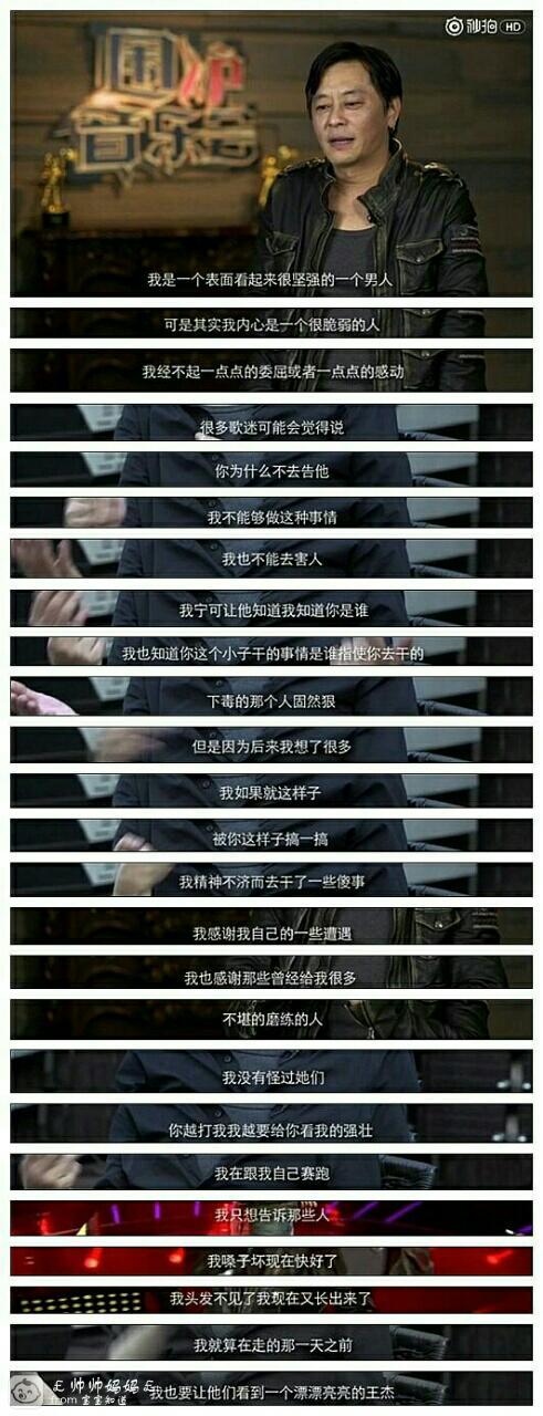 他也对歌迷解释,为什么自己选择哑忍,并没有告发那些害他的人,他说自己什么都知道,知道是谁干的,导指肆知道谁指使,但因为他有宗教信仰,没办法“以牙还牙”。