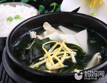韩国人认为藻类是有助于产后的调养的。藻类含有丰富的蛋白质、维他命A、矿物质、易于被人体吸收,对身体有莫大的益处。海带含有可溶性纤维,比一般纤维更容易消化和吸收,帮助排便顺畅,对产后妈妈补充营养和瘦身都有很好的效果。我们看到韩剧主角喝的海带汤都是以加了牛肉为主,比较补身,丰富了营养还能减低海带的寒性,产后月子期不建议进食寒性食物,母乳妈妈要留意,以免过奶给宝宝。海带汤口味清淡,适合孕后恢复初期,母乳妈妈可以熬猪蹄海带汤和排骨海带汤,对下奶很有好处。