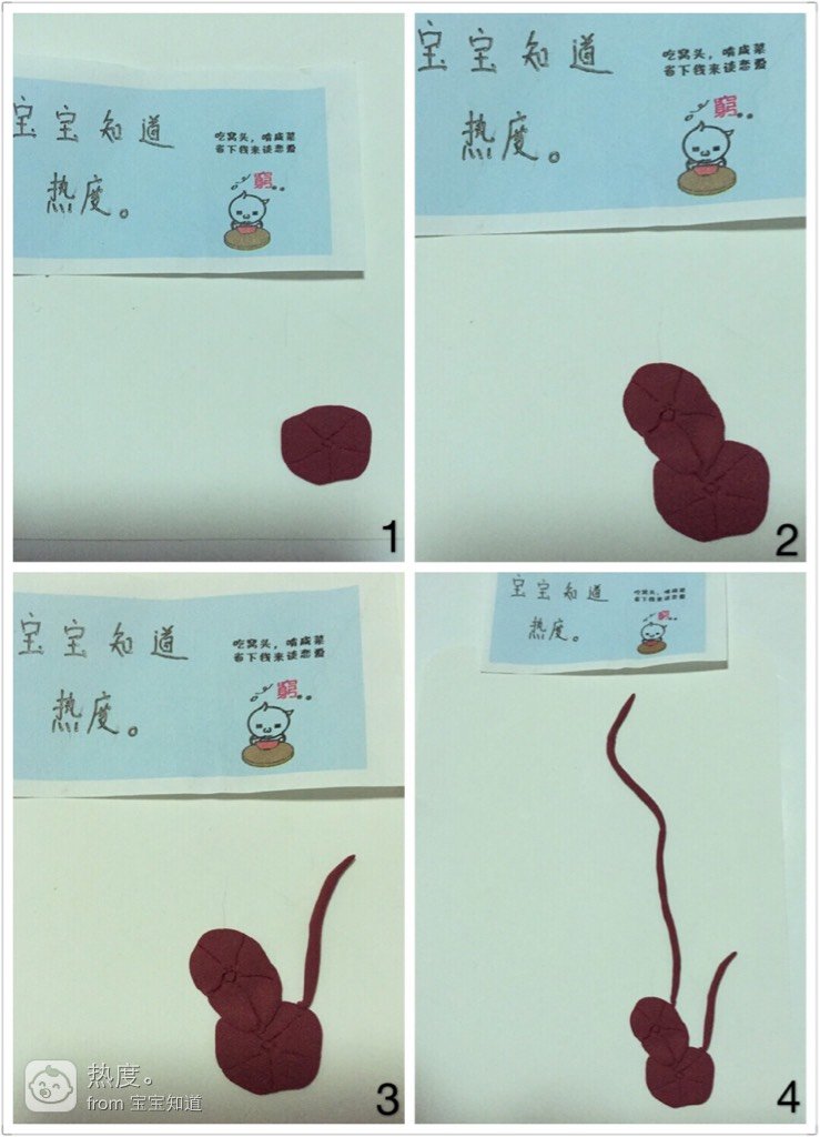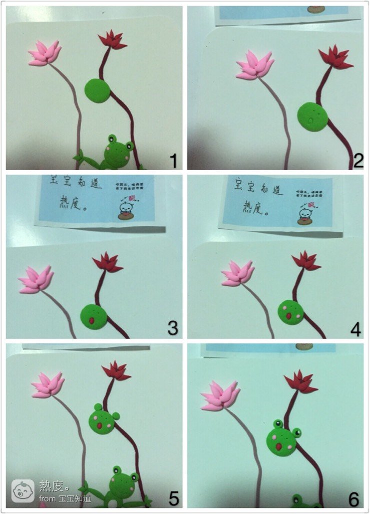 再取红褐色粘土捏一片一样的荷叶,两片荷辨哑某叶粘在相邻的位置。