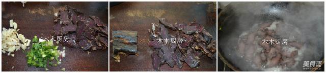 多味牛肉的做法 1. 风干好的牛肉切片,蒜瓣切小,红葱头切小,朝天椒切小锅里放油,放入切好的肉片翻炒8分以剪钟左右,然后倒勒旧倘入一吉愿些凉水,直到水分快蒸发干