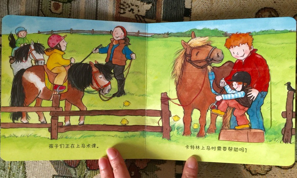 今天和孩子一起阅读的绘本是宝宝科学翻翻书系列之《我爱骑马》