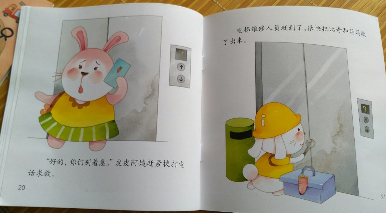 “好的,你们别着急。”皮皮阿姨赶紧拨打电话求救。 电梯维修人员赶到了,很快地把比奇和妈妈救了出来。