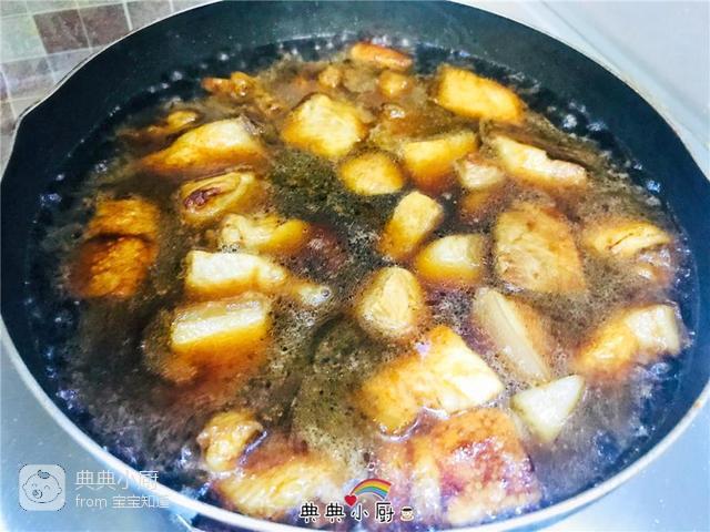 5,等五花肉完全包裹上糖色潜孟之后,就可以加开水了。记住一定要是开火,如件灿果加凉水的话,烧了来的肉一定是口感较柴的,别问我自己知道的。毕竟我不是第一次烧红烧肉的,