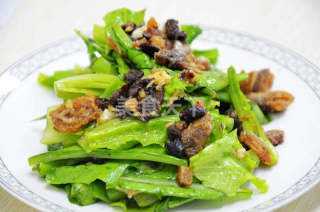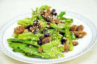 7 把油麦菜和调好的豆豉鲮鱼一起调合均匀即可装盘!