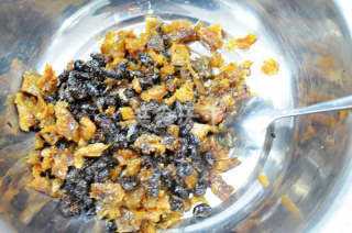 5 把蒜泥和豆豉鲮鱼等调味品调和在一起