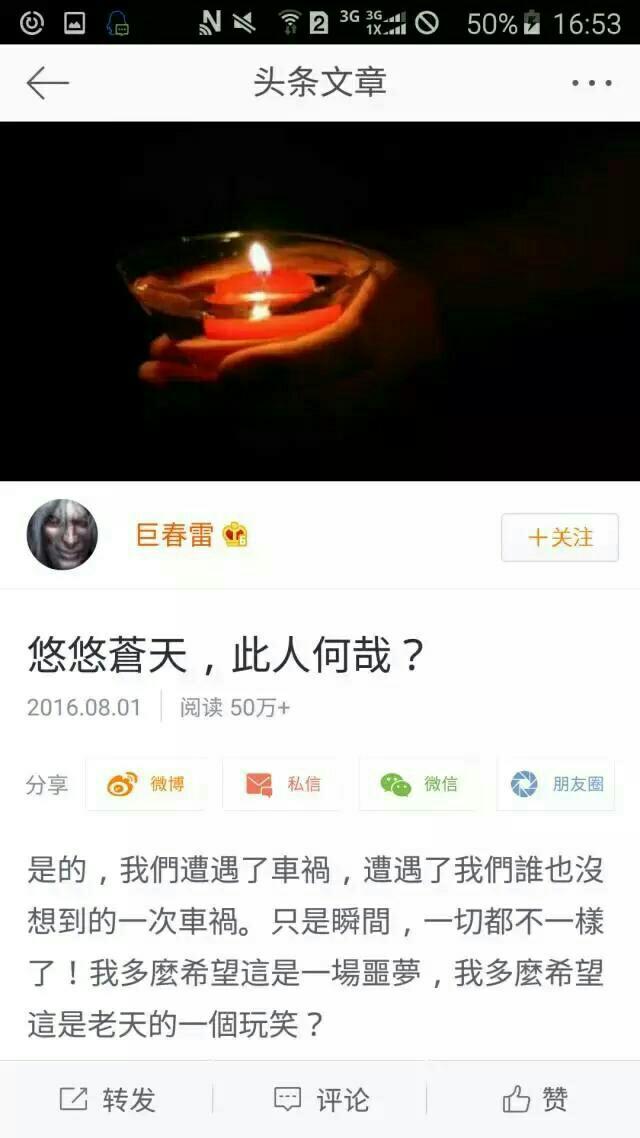 孕40周+0天 LV.24在车祸中受重伤的巨春雷在昨天发表微博长文,还原了事故状况。