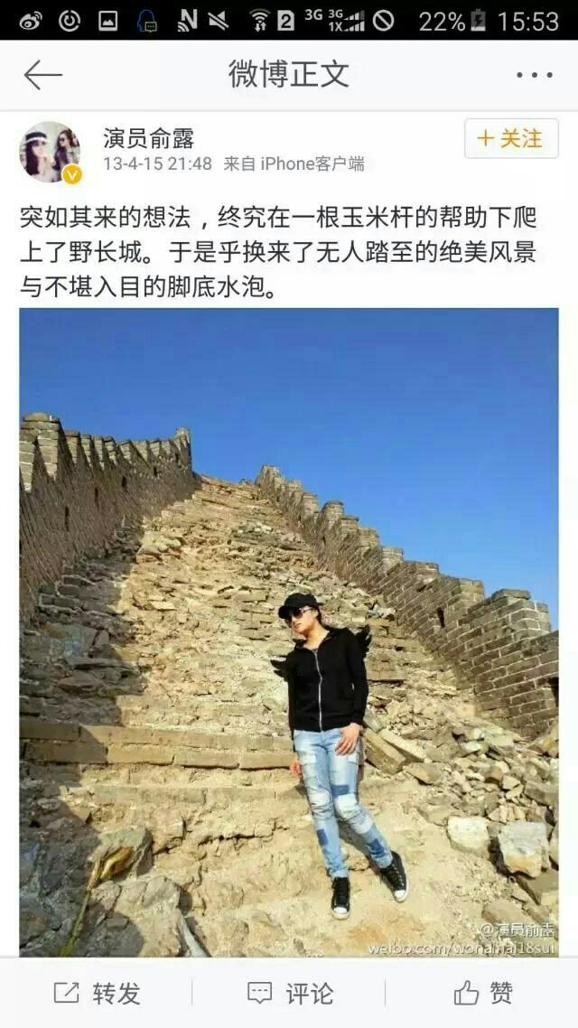 孕40周+0天 LV.24她还特别喜欢旅游,说走就走,拿着根玉米杆就敢去爬野长城,即使爬到脚底都起了水泡,也还是为欣赏到了美丽的景色而欣喜。