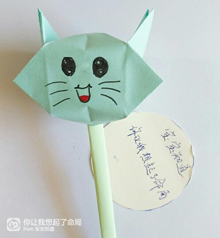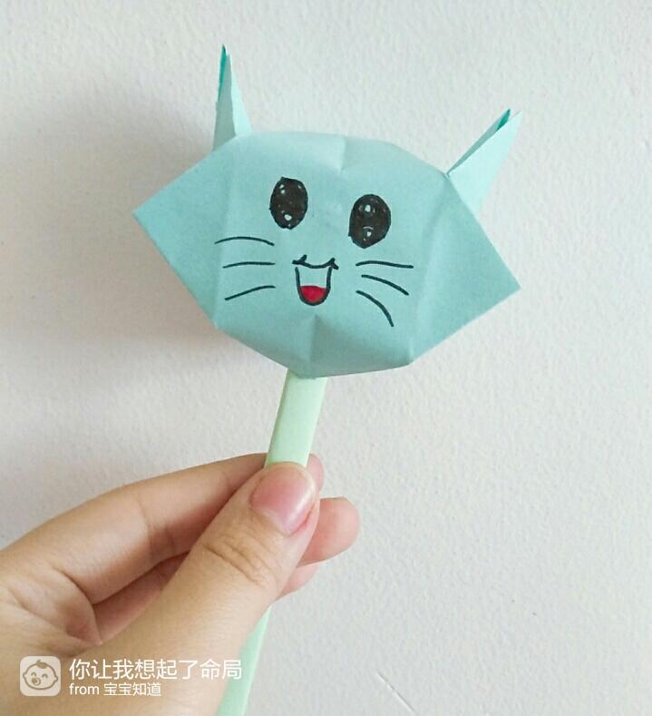 最后再把这根棍子插入猫头吹气的那个孔里就大功告成啦,是不是很可爱呢?