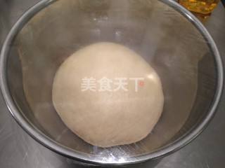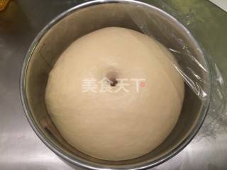 3 将面团取出,搓圆放入盆内,盖上保鲜膜进行一发(25度-28度)