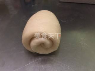 7 上下擀成椭圆型,从上往下卷,静置15分钟