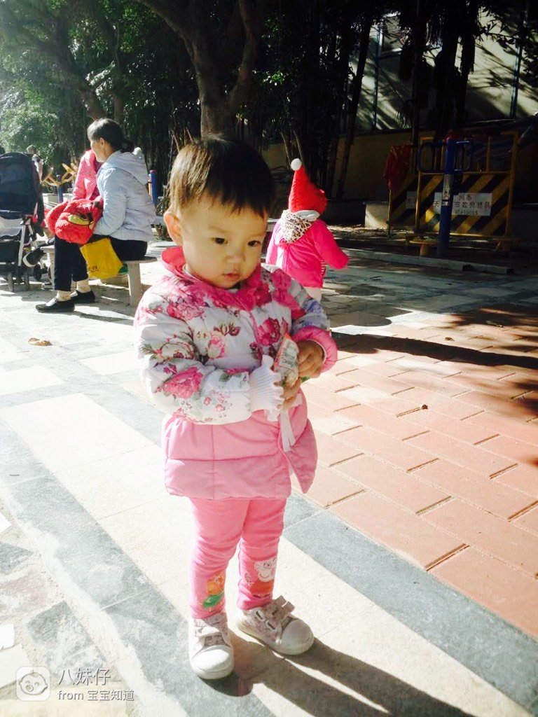 图四:妈妈买的劣辨粉色花花的羽绒外套+奶奶买的粉色裤子+外婆买的浅色系列的花花鞋子!一身的花花!我好喜欢呀!