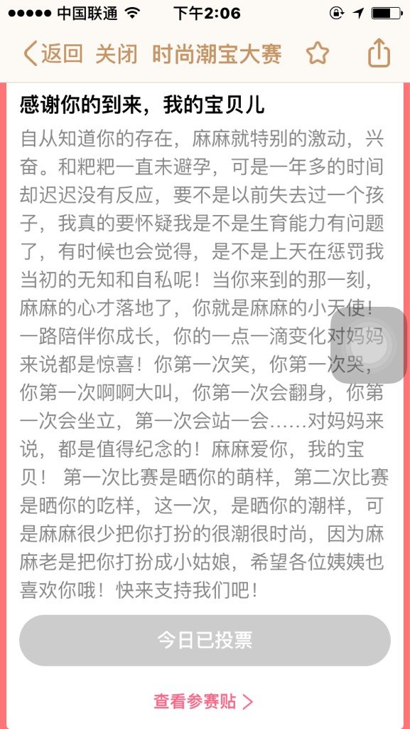 宝宝知道时尚潮宝大赛又来喽!必须支持啊!