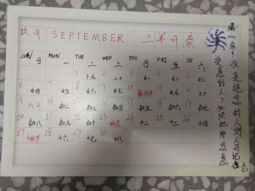 再来一张,台历背面和成品效果图,晚上采光不好,将就将就着看看吧