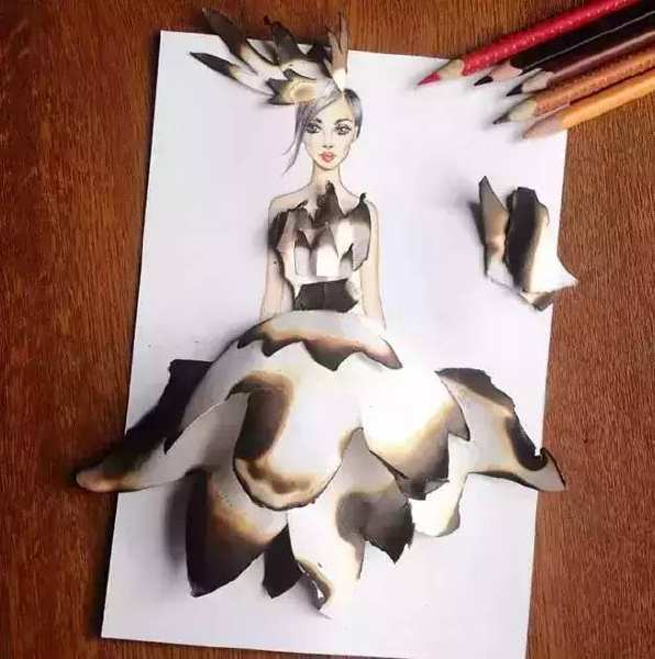▲▲用过的火柴,揉烂的锡箔烧黑的纸片,吃剩的 橘子 皮这些废物都成了他的“布料”