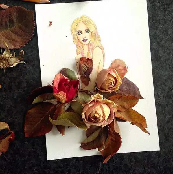 ▲▲鲜花枯叶“织成”的裙摆比春天还美,比秋天还浪