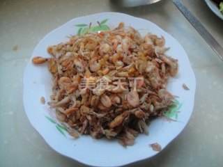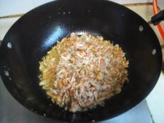 6 炒锅重新放油烧热,再次放入小河虾炸至表皮酥脆。