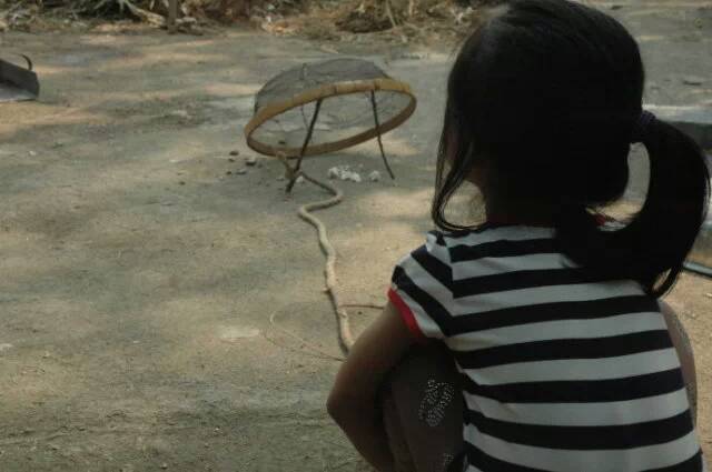 和小朋友们宝逼近一块,拿一个筛子,用一根棍子绑个绳子,把筛子支起来下生叹撒些金愚小米,开始工作了。