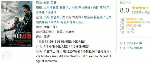时间,是科幻电影里常用到的元素之一。如《回到未来》系列、《黑衣人3》、《星际穿越》等,都将时间元素运用得炉火纯青。今天讲的也是一部有关时间的科幻电影,与前面的几部电影相比,它的设定在某些方面更为有趣。这部电影就是“阿汤哥”汤姆•克鲁斯与艾米莉•布朗特主演的《明日边缘》。