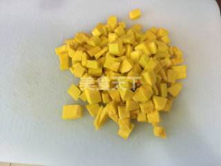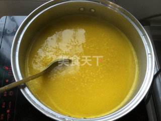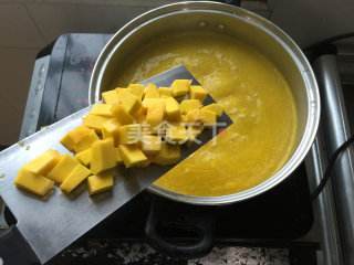 7 加入适量南瓜粒,还是要不停的搅动哦。