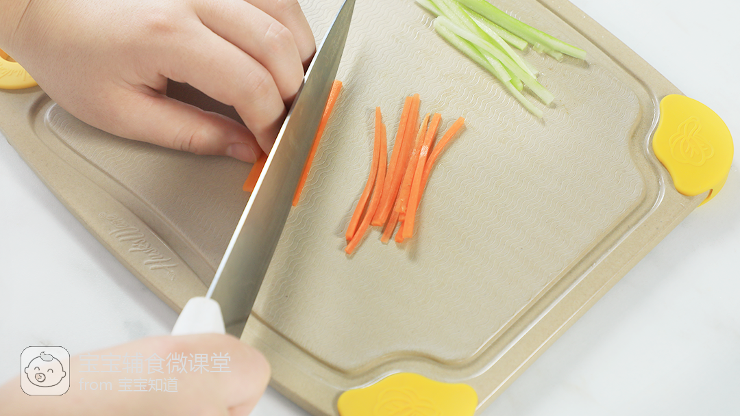●妈妈们可以把面条稍微剪短一些,既方便宝宝吞食,也避免宝宝吃得到处都是。