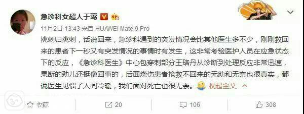 就如同王珞丹所说的,《急诊科医生》是会对社会有提醒和反思的作用。