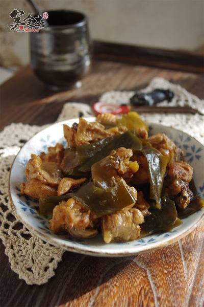 鸡训队腿 两个 辅料 海带结 50克 调料 色拉油 适量 食盐 3克 酱油 3毫升 葱 3克 姜 3克 八角 1个 花椒 3克 料酒 3毫升 老抽 3毫升