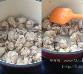 2. 锅里放一点油或不放油,小火把鸡块煸去剩余水分(一定要煸干),盛出备用
