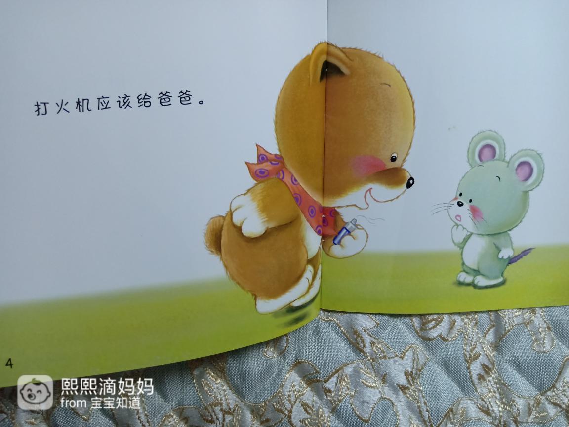 小熊对小老鼠说,打火机小朋友不能玩,很危险,要把打火机交给爸爸。