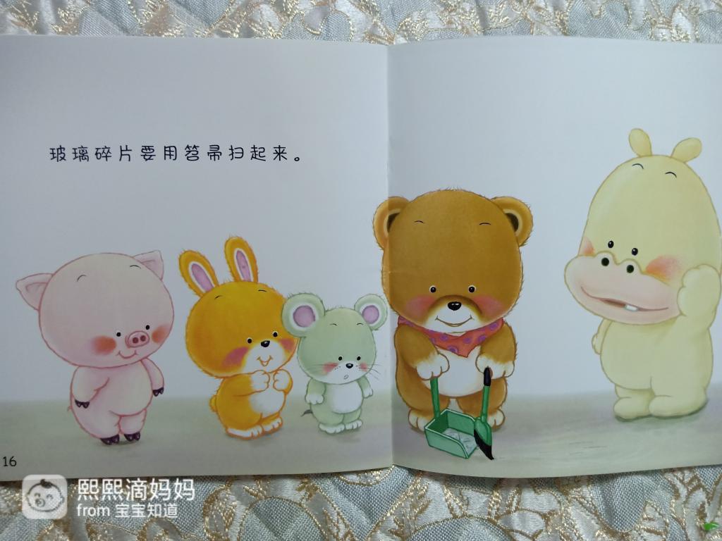 小熊赶紧拿来笤帚,跟小伙伴们说,掉在地上的碎玻璃不能用手去抓,一定要用笤帚扫起来。