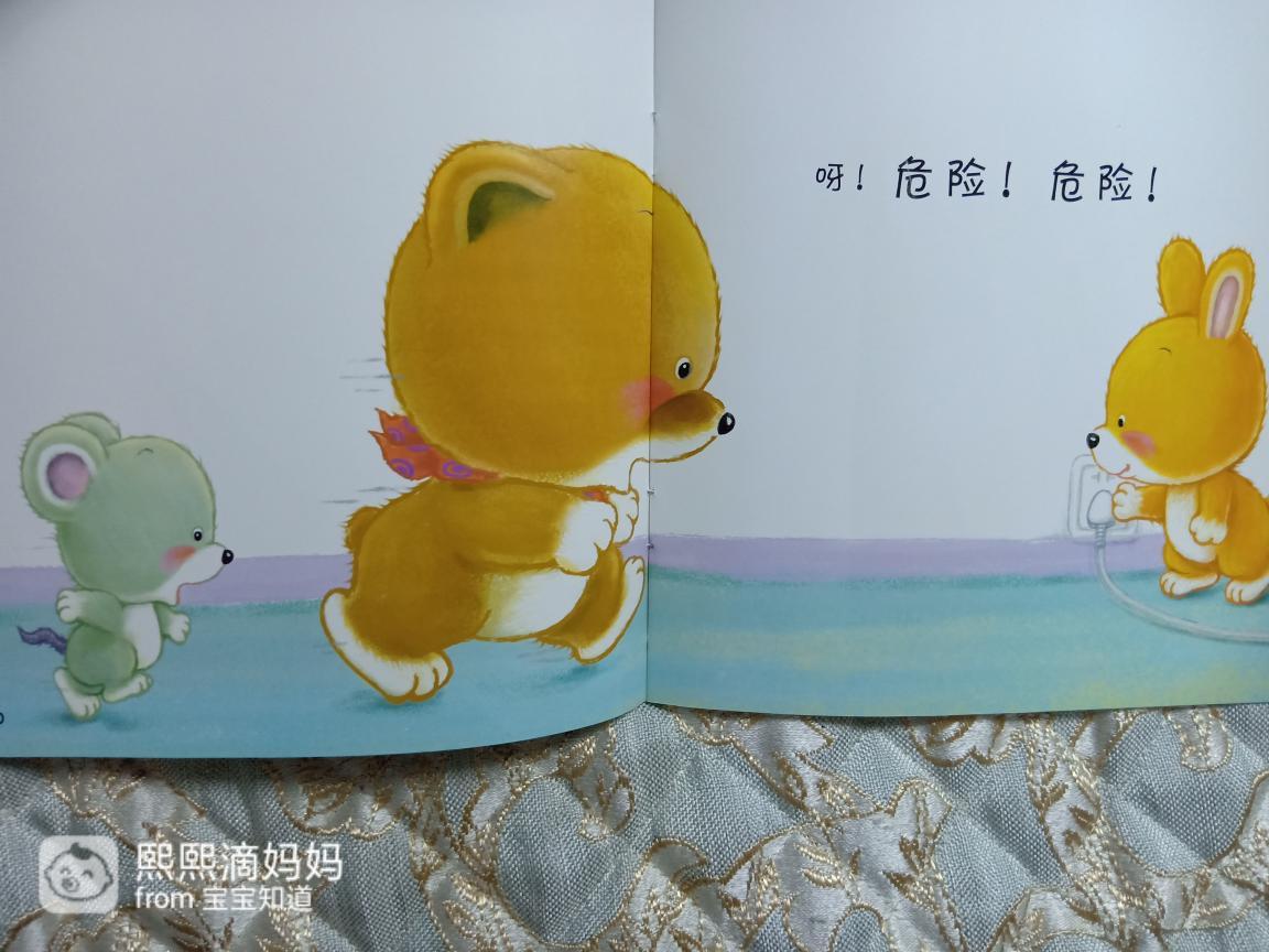 小熊和小老鼠又去找小兔子,查香寸正好看见小兔子在玩插座,小熊赶紧说:“呀!危险!危险!”