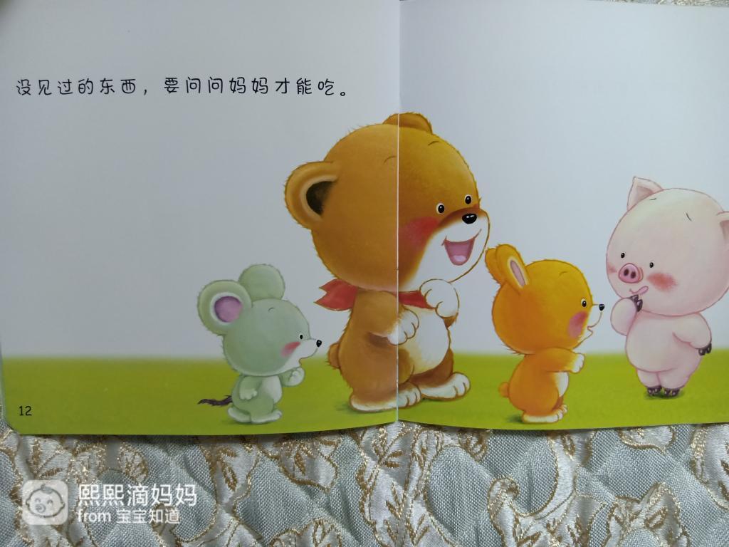 小熊对小猪说:“我们没有见过的东西不能岩哑拿起来就吃,一定要问问妈妈能不能吃,否则有可能会吃坏肚子,甚至更危险。”
