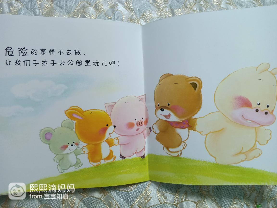 好朋友们互相手牵着手,小熊说:“危险的事情我们不能做,我们大家一起手拉着手去公园里玩吧!”