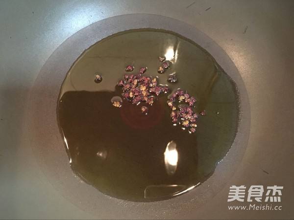 10. 冷锅放入植物油、冷油放入少许花椒,小火2-3分钟爆出花椒的香味。然后捞出花椒丢掉,留花椒油。