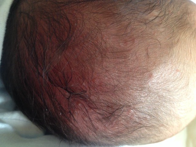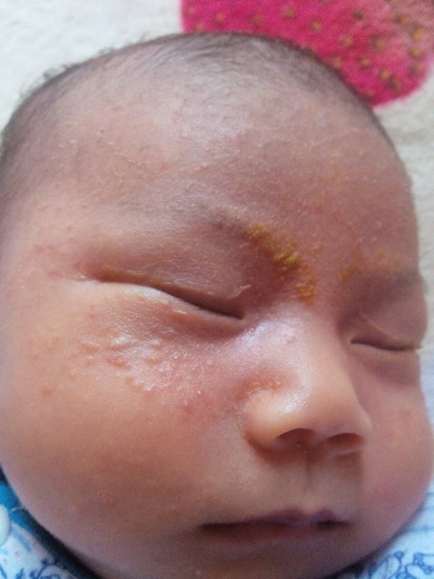 2个宝宝 LV.8之前我宝宝头上也有一颗颗这样的,中间还有点白,家访的医生说是胎毒没事的,如果多了话就抱去医院买点药膏