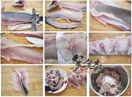 麻辣粉条的做法 1. 宽粉条提前用热水浸泡至软;豆芽摘去根部,菜场里买回来的黑鱼洗干净,剁去鱼头,将鱼身片成蝴蝶状的鱼片(也可以买菜场里片好的鱼片,更简单方便),调入盐,鸡精,胡椒粉,料酒,蛋清及生粉抓匀入冰箱腌制
