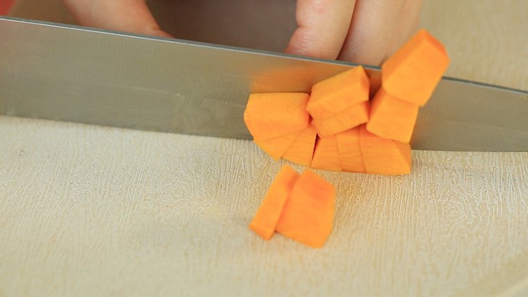 南瓜去皮去籽后切成小块。