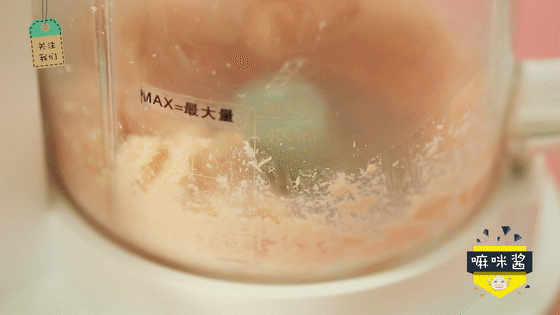 三文鱼放入辅食机中搅打成泥 。