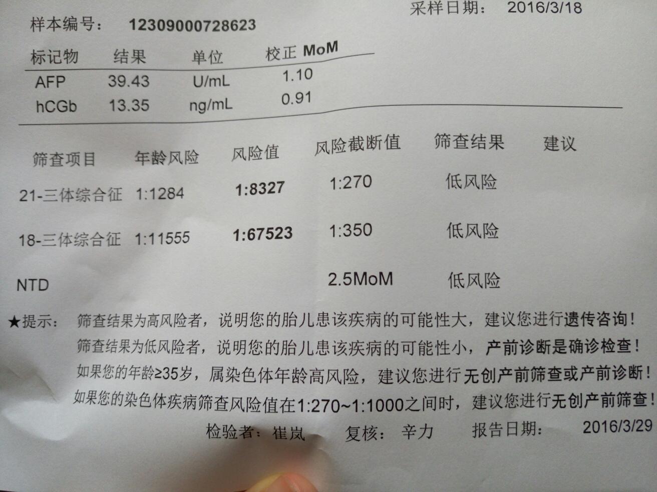 接唐筛低风险顺利通过