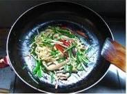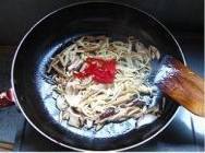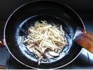 2. 锅中座油,下抄过的蘑菇、香菇、笋干丝到锅中炒熟。