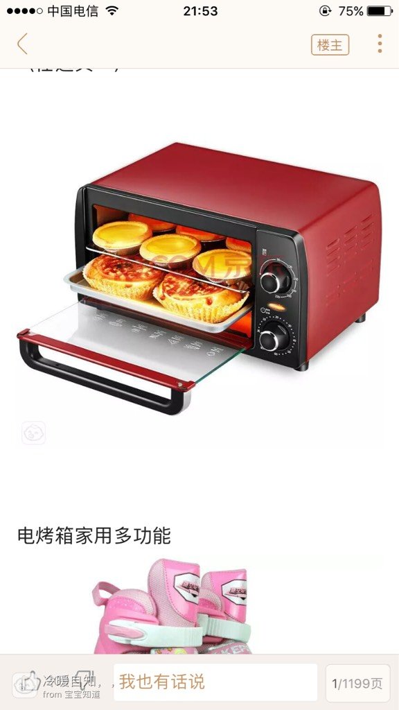 不大的烤箱,也不会占用太多的地方,功能却一点也不少。哈哈,总算把你收回家了,宝宝知道,给我添了一件又一件我喜欢的礼品,真的非常感谢!