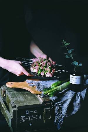 将青椒 葱切片