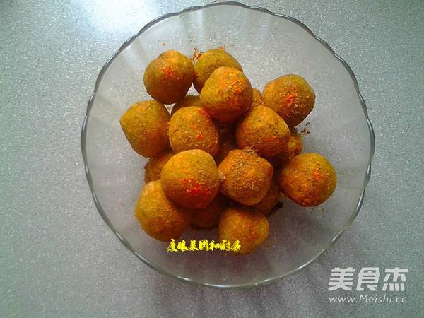 9. 捞出丸子控油,加入辣椒粉和孜掏蔑然粉,很香哦