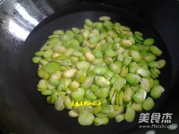 2. 蚕豆米冷水下锅,煮大约10分钟,将蚕豆米煮烂