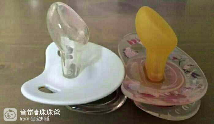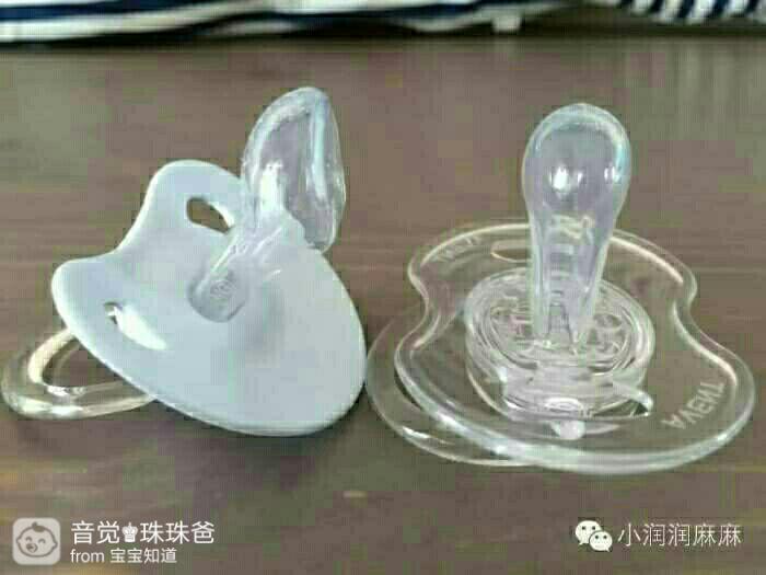 1、安抚奶嘴主要是硅胶和乳胶两种,性状主要是圆型(奶嘴直的)和拇指型(奶嘴弯的)左侧是拇指型,右侧是直的。