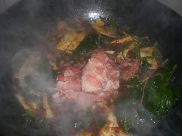 4. 依次放入肥牛卷,开锅烧,用筷子在汤中划开肥牛卷,看肥牛卷变色卷起,即可关火